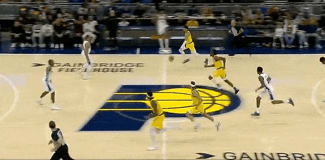 比赛第二节,哈利伯顿突破送出不看人传球,西亚卡姆轻松扣篮。